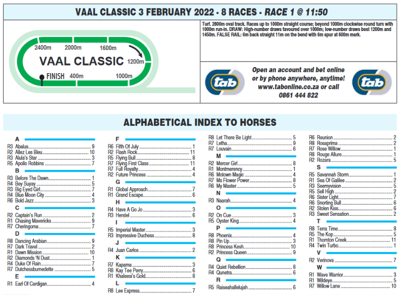 3 years 8 months agowhats with the weights and numbering in race 7. Looks like a KZN fields but the draws aalso dont line up.
