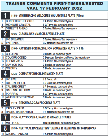 R4: Does look a two-horse race between JP Two Thousand who gets the allowance, and Forgotten Time; the Crawford stable has had some success up in Gauteng and Another Thief could be the danger with the Tarry first-timer who could be anything