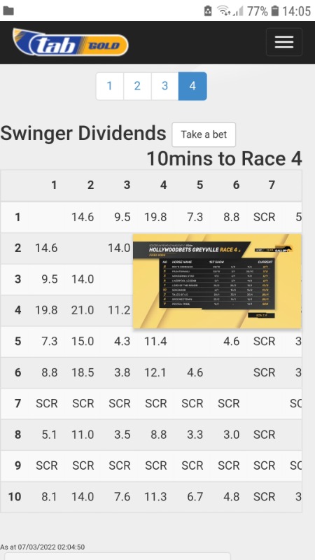 I am aware the punters are fighting a losing battle on scrolling fixed odds as 4RACING has to promote the tote.