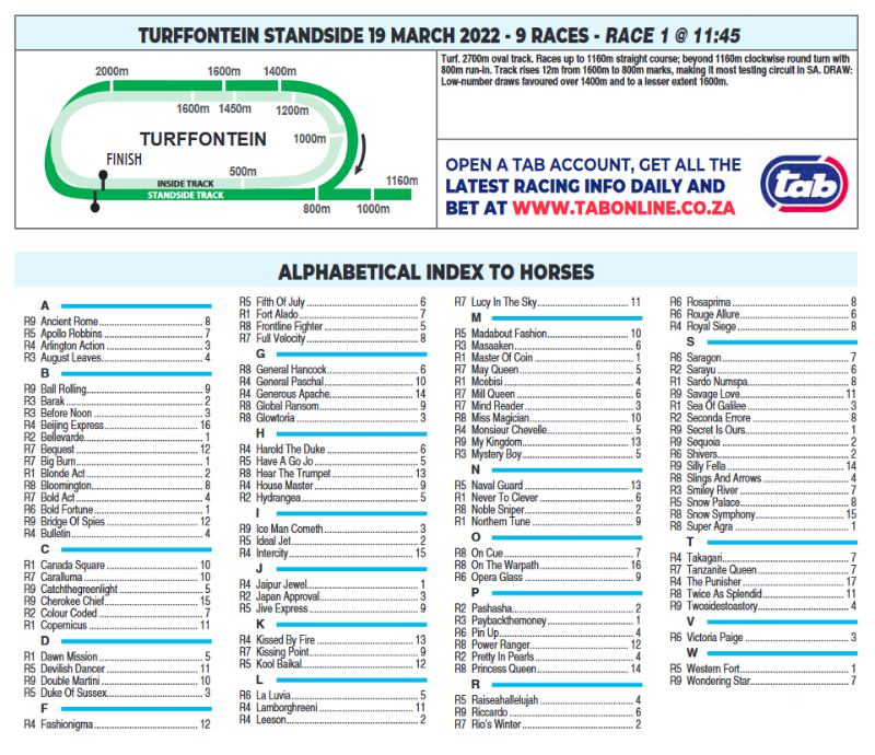 TURFFONTEIN STANDSIDE 19 MARCH 2022