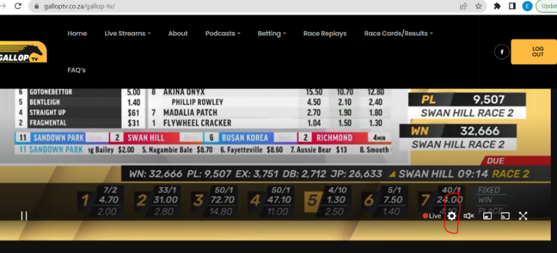 GallopTv streams every KZN meeting,but does not have a Quality control setting (eg.240/360/480/720p.Etc) which YouTube has