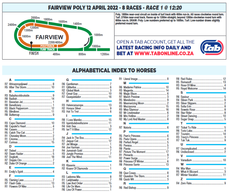 2 Horse Racing South Africa FAIRVIEW POLYTRACK RACE 7 2022-04-12 15:50 12. JAQUAR CAT M/Win 50.00 78652.08 R 12.75 Pending