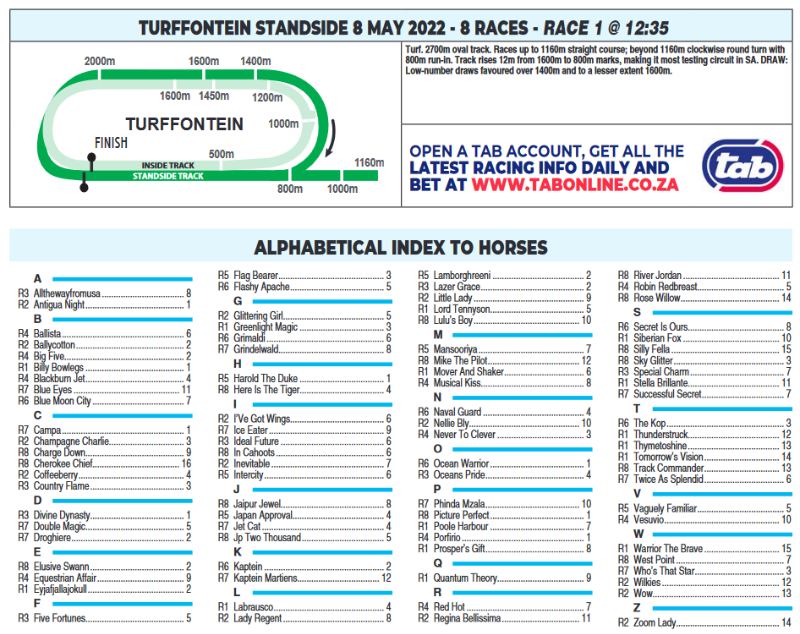 Re: TURFFONTEIN STANDSIDE SUNDAY 8 MAY