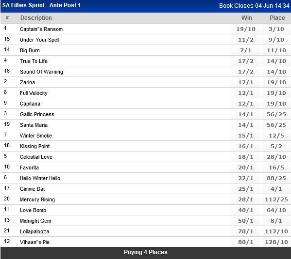 SOUTH AFRICAN FILLIES SPRINT (Grade 1)