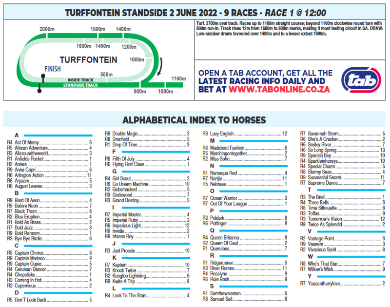 Re: TURFFONTEIN STANDSIDE THURSDAY 2 JUNE