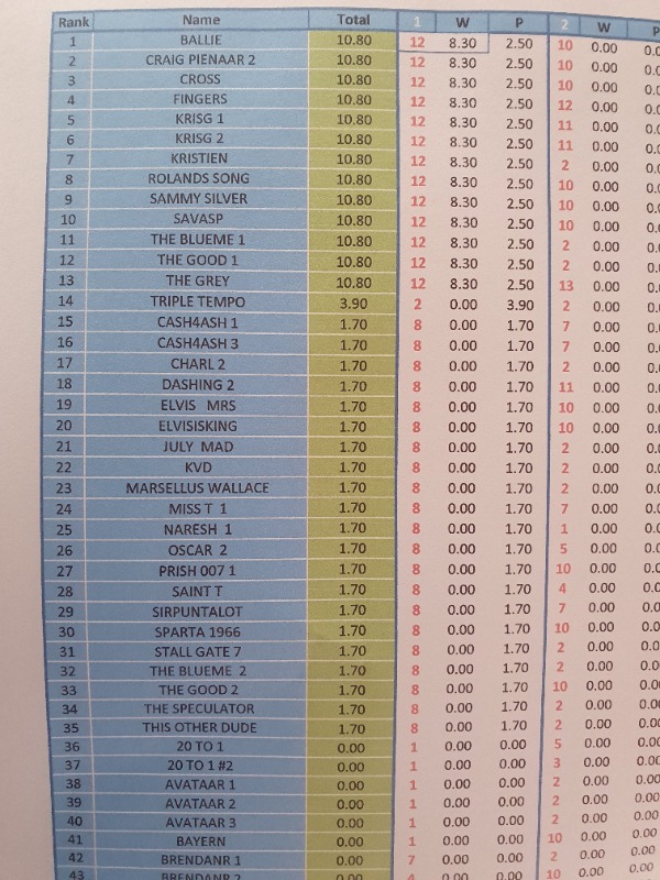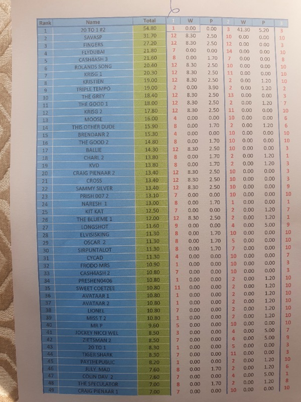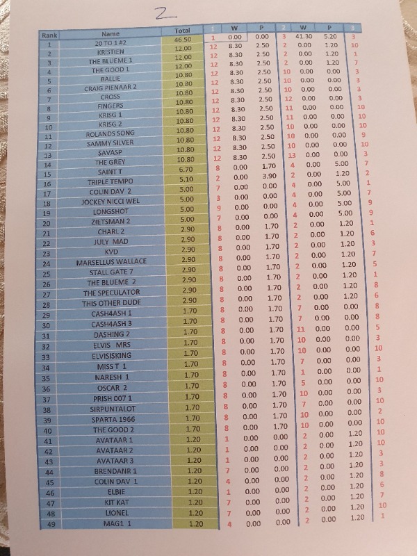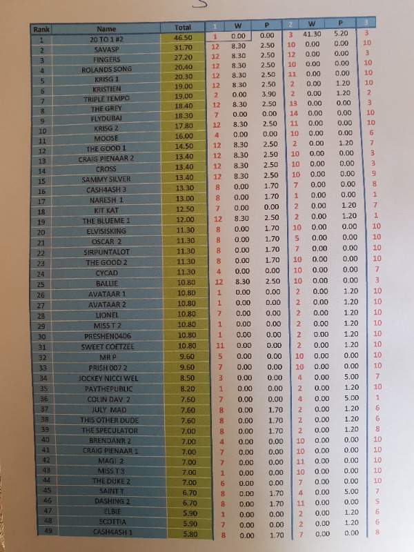 A FEW DOUBLES STILL TO BE ADDED TO THE SCORES.