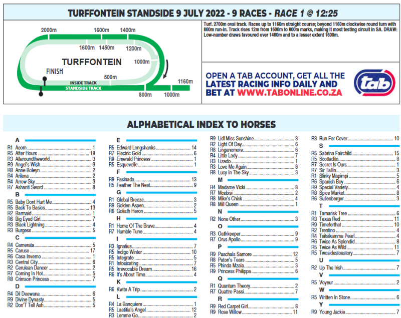 Re: TURFFONTEIN SATURDAY 09 JULY