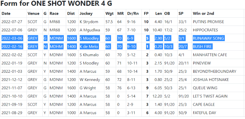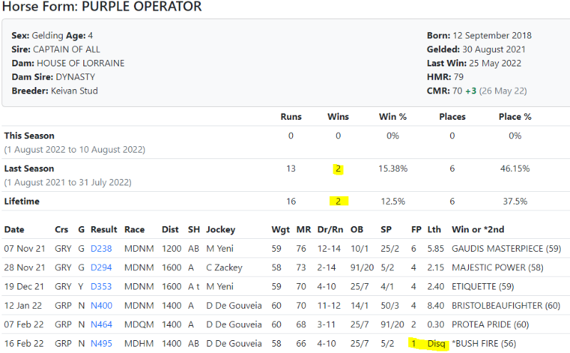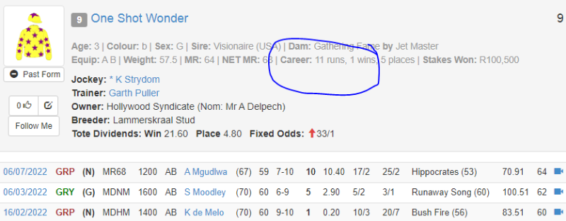 Aye that card is wrong, horse has never won a race
