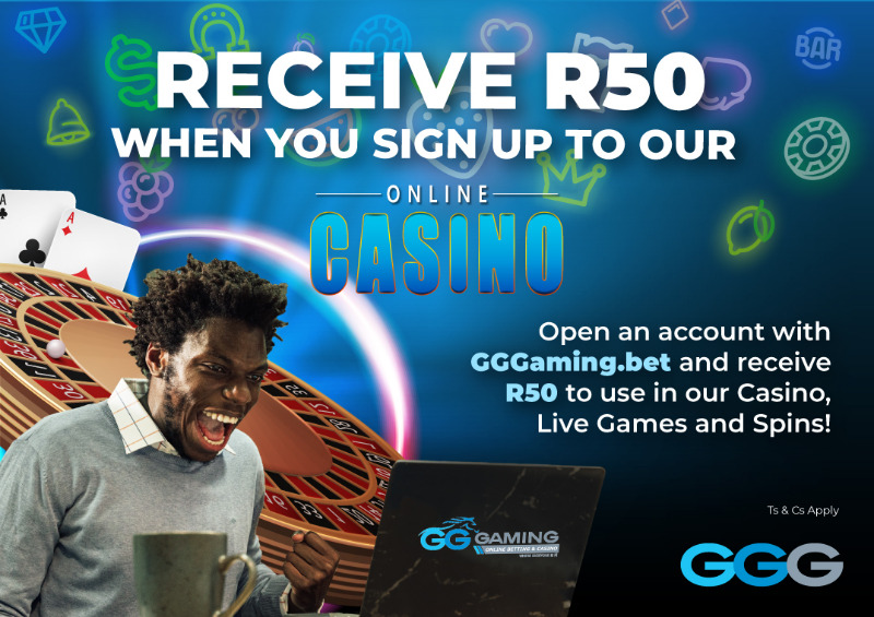 Open an account with GGGaming.bet and receive R50 to use in our Casino,Live Games and Spins!