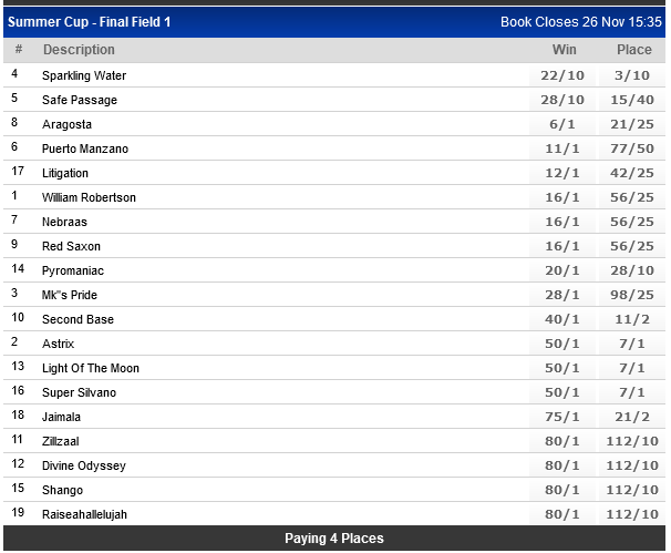 Final field for the R2.25-million Betway Summer Cup (Grade 1) over 2000m on the Standside track at Turffontein on Saturday.
