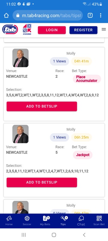 Molly's tips used to go on youtube, but didn't get many views.. Also Youtube are strict with gambling content so i'm sure they are only aired on 240 now