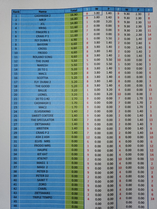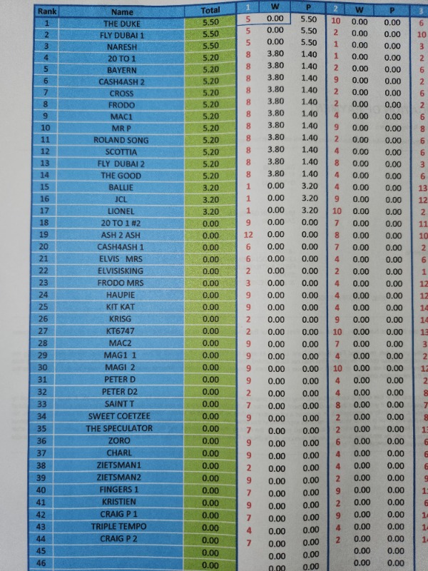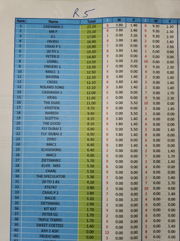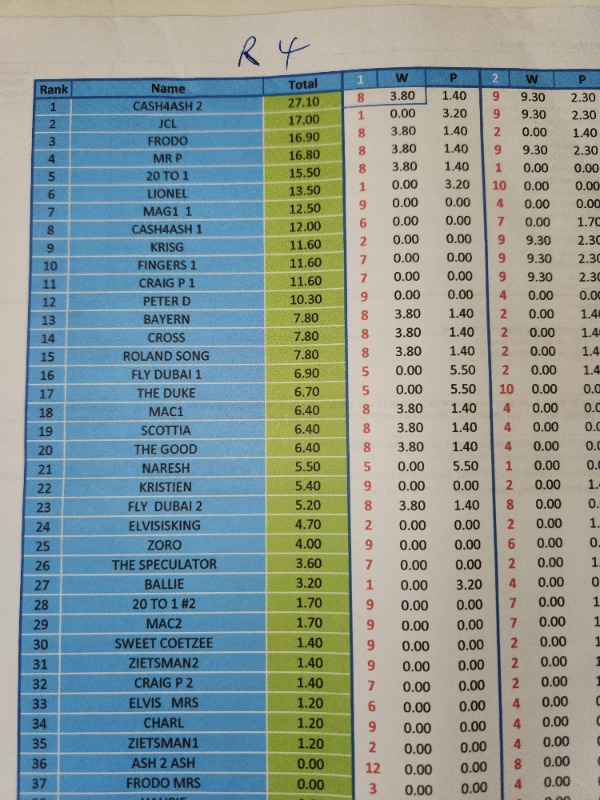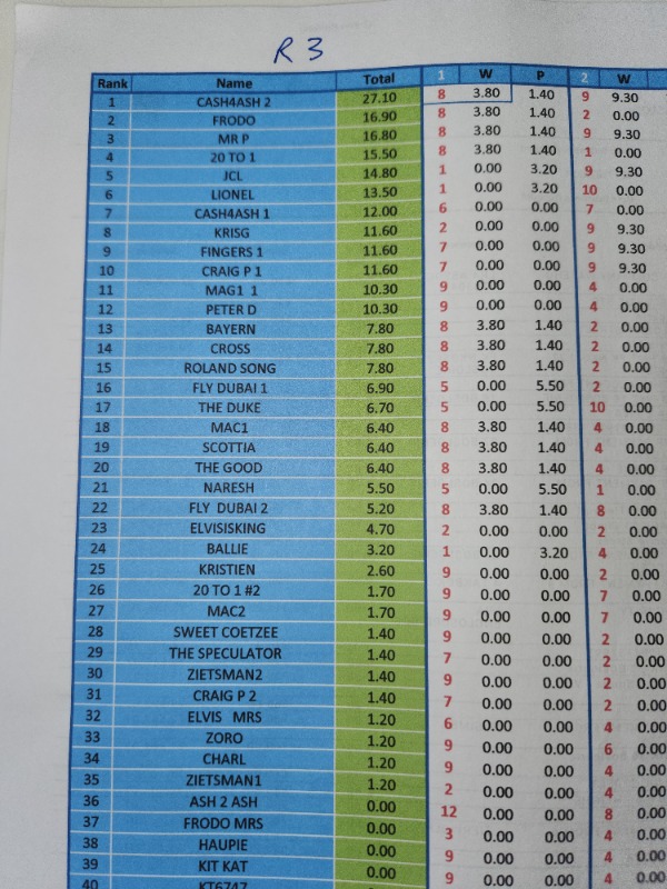 AFTER R 2) INCLUDING DOUBLES....... MR P IN LEAD R 28.40