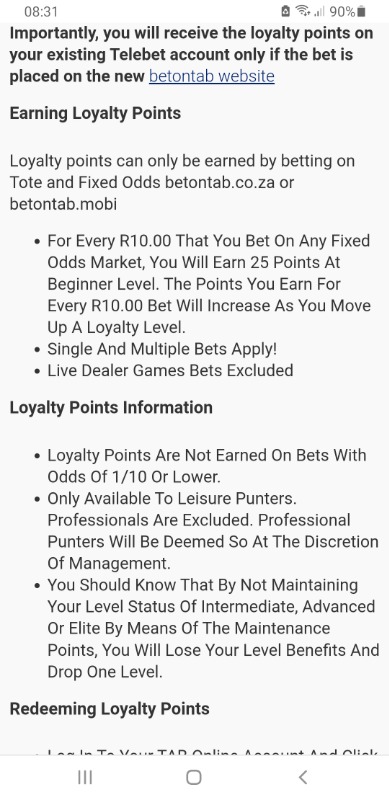 I had a quick look at the current rules ito Loyalty Points for both Betontab and Interbet - and if I understand correctly, these 'loyalty points' are laughable to say the least.