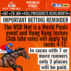 As was the case last year, the World Sports Betting Cape Town Met race meeting at Hollywoodbets Kenilworth this Saturday is the first Hong Kong Jockey Club (HKJC) World Pool event of the year and that gives TAB customers a rare opportunity to bet into the world’s biggest tote pools on South African races.