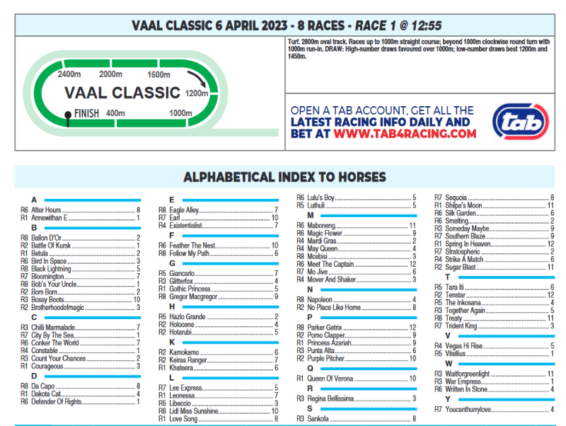 R8: Between 3 runners in the last; apart from Mcebisi who is overdue imo and has pole position. I think Eagle Alley will be right there and then Napoleon - dont like Bob's Your Uncle with that weight