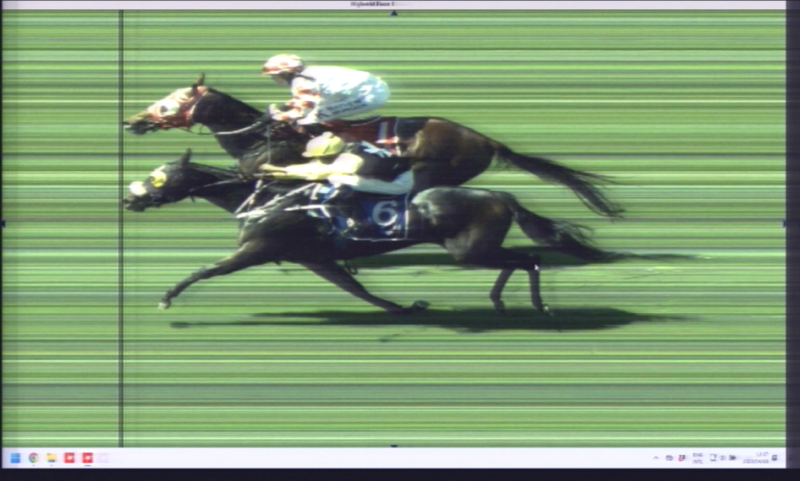 Race 1... Casual ride by Kelsey Munger vs jockey on the second horse. Almost won. Determined action.