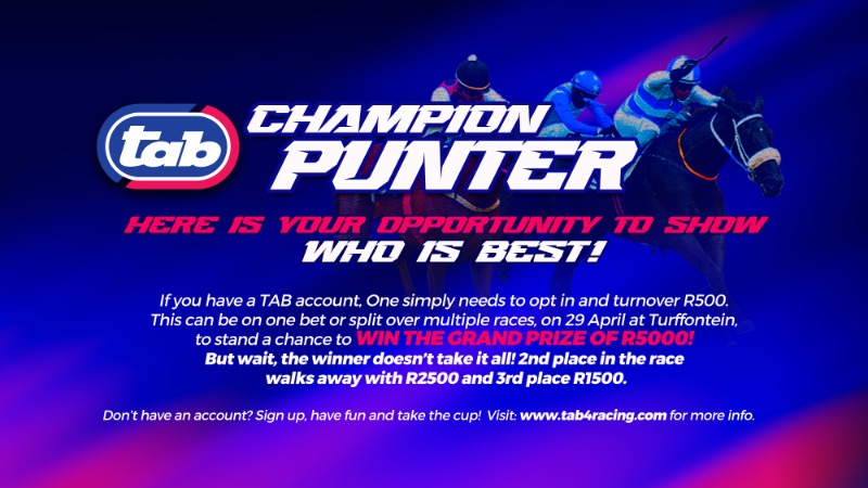 If you have a TAB account and do turnover on Champions Day of R500 or more, you will be in line to win big in the punters competition.