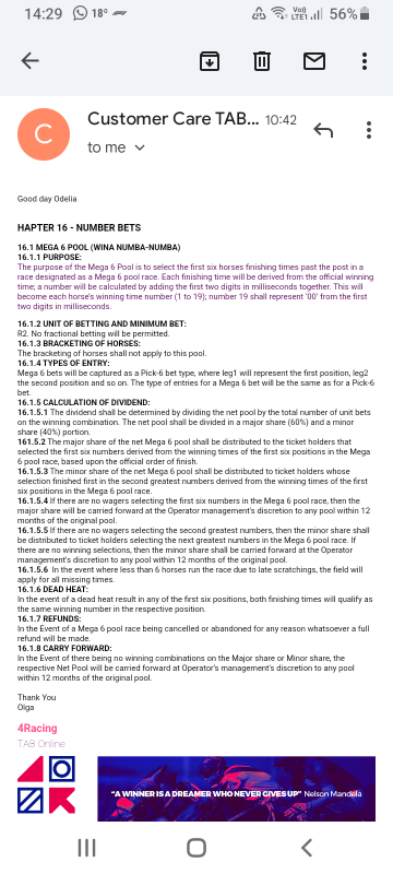 From the little info that I gleaned it's a kind of Pick 6 numbers game, no horses.