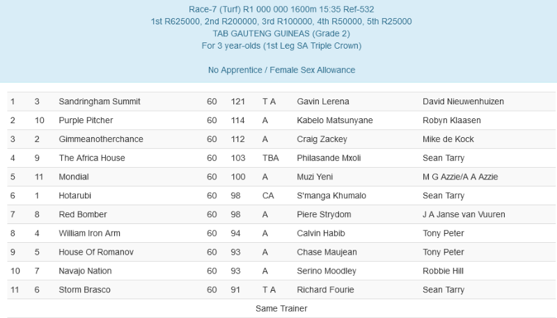 I personally cannot see anything coming close to Sandringham. I am a HUGE Main Defender fan but even if he was in this race, I would still stick with Sandringham. Word is that Sandringham has also improved leaps and bounds since his last race. I honestly think the balance will be running for 2nd place.