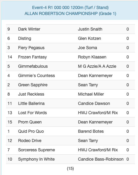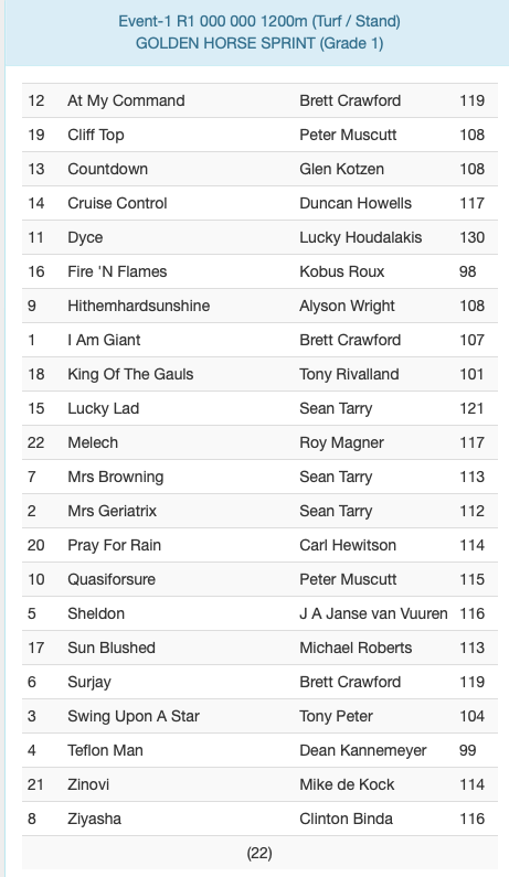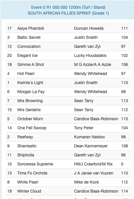 Re: FIRST ENTRIES HOLLYWOODBETS SCOTTSVILLE SPRINT DAY
