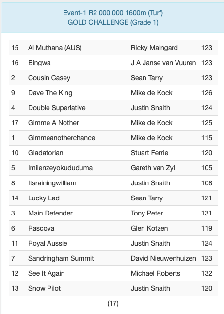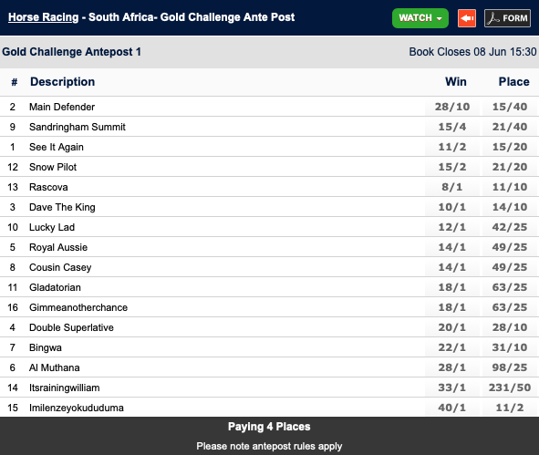 Re: ENTRIES HOLLYWOODBETS GOLD CHALLENGE