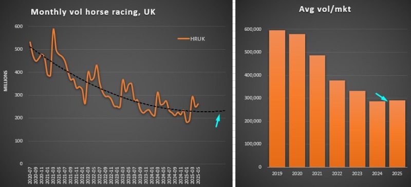 Avg horse race market vol was gbp 600k in 2019, now half that.
