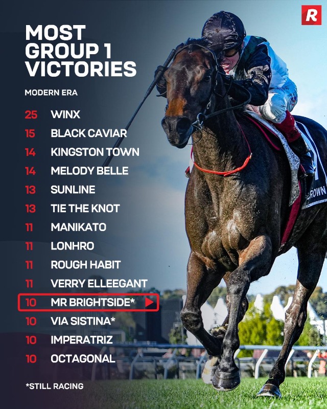 Mr Brightside is really tough to get past. 20 wins 12 seconds from 46 starts 16 million dollars in prize money