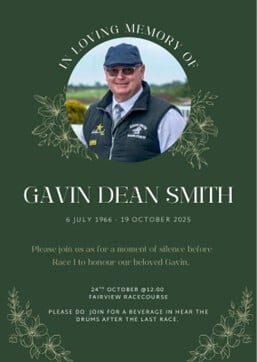 Johannesburg, South Africa — It was with enormous sadness that the racing community woke to the news that multiple East Cape Champion trainer Gavin Smith had passed away on Sunday, 19 October.