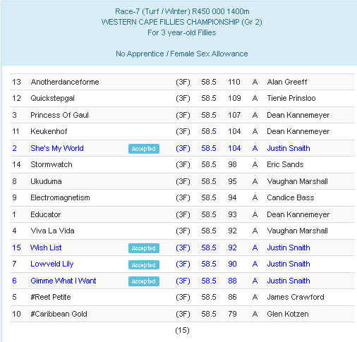 Re: R450 000 1400m WESTERN CAPE FILLIES CHAMPIONSHIP (Gr 2) 08 November 2025
