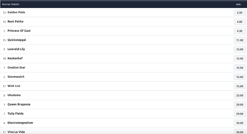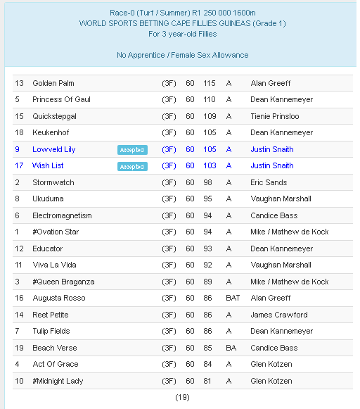 Re: WORLD SPORTS BETTING CAPE FILLIES GUINEAS - 6 December 2025