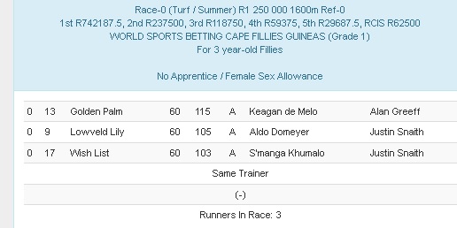Re: WORLD SPORTS BETTING CAPE FILLIES GUINEAS - 6 December 2025