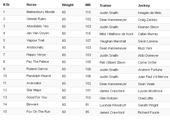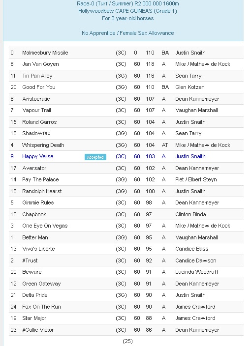 Re: 1600m Hollywoodbets CAPE GUINEAS 13 DECEMBER 2025