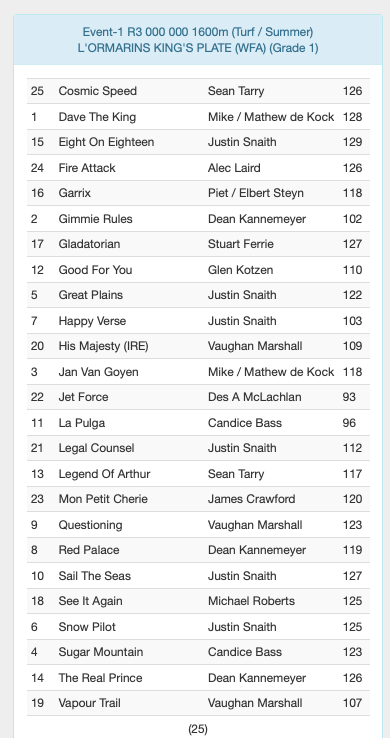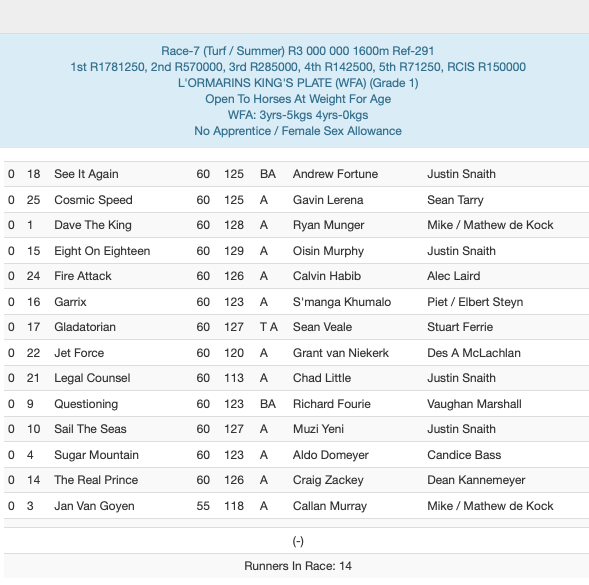 Zietsman has a runner George Handel . Not sure if this is the race Atyaab won a few years ago?? Race 9