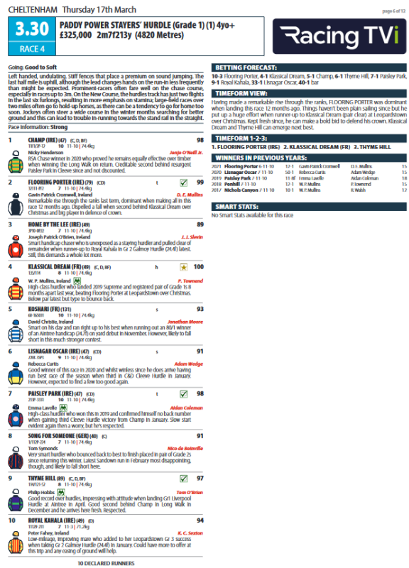 BETTING PREVIEW DAY 3 & 4 thanks to the team at RACING TVi and Gallop
